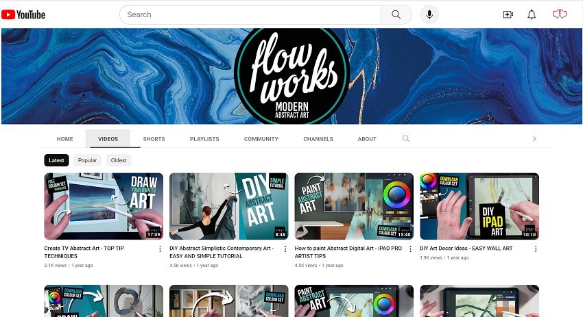 I was so impressed. I searched YouTube for a Procreate art lesson. I found a channel for producing modern abstract art with Procreate. The channel is run by a UK art company called FlowWorks.