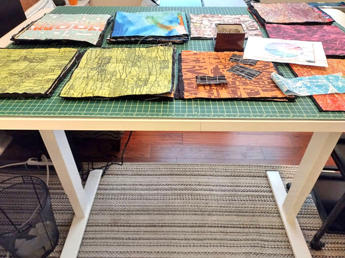 With Spoonflower fabric panels, making mini quilts is a now much easier. The panels hold 45- 10″ squares printed on a good quality cotton. So I can do an entire collection and then some.