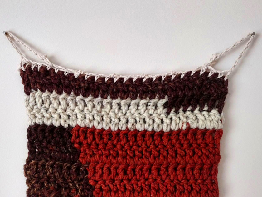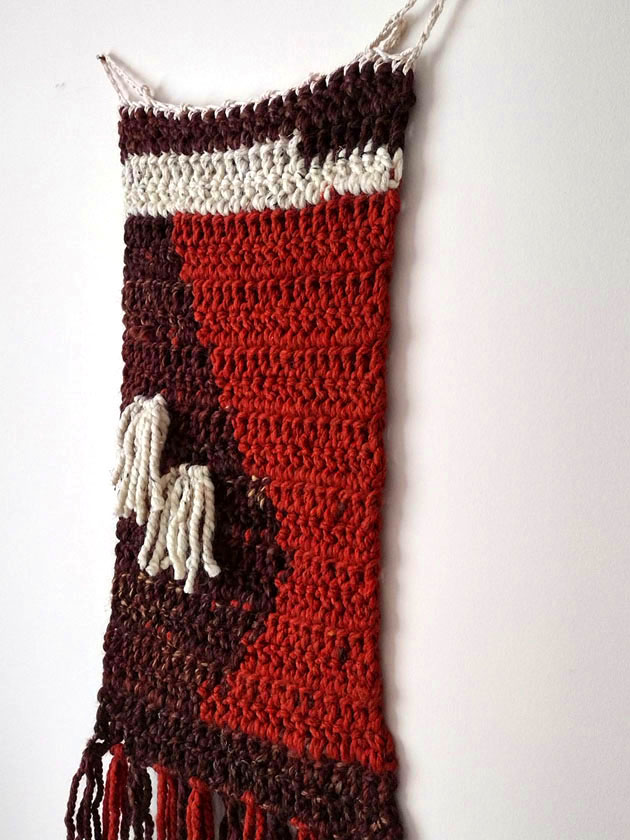 It starts with 21 single crochet stitches. The rest of it is 20 double crocheted rows. This way, I could achieve the height very quickly. This wall hanging took a day which gave me quick results and was not too taxing to complete.