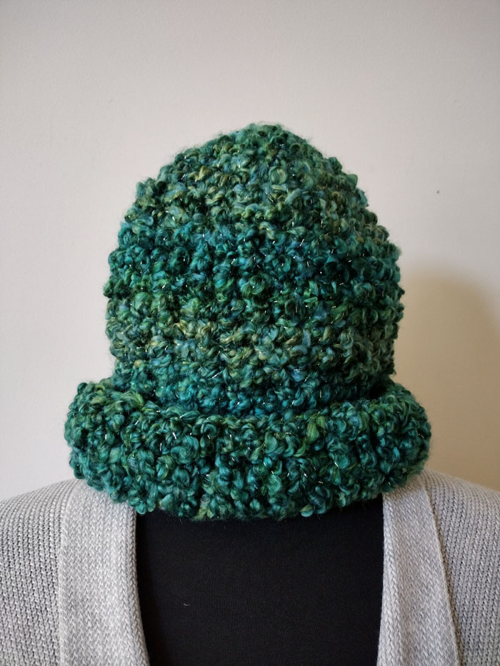 One really helpful inclusion in the pattern is an adjustment to make the hat larger. The original hat measures 26″ around the head. The easy adjustment makes is 30″ around. I completed hats in both sizes with no problems.