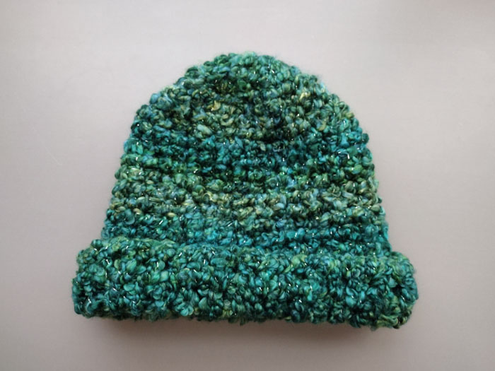 After a few starts with the top, I finished the hat in 3 hours the first time. Not bad for a first hat. This first hat is for my mother. I quickly whipped up a second hat for my mother-in-law and one for me as well! I spent two hours for each hat.