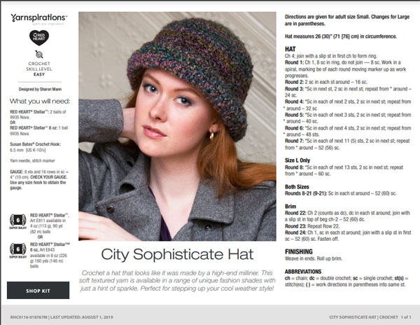 - Red Heart’s Yarnspiration Pattern – City Sophisticate Hat (free PDF download)