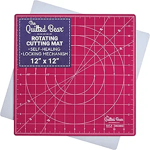 Rotating Cutting Board – Before getting this board, I use to walk around the table cutting fabric blocks. Now, my 12″ square rotating allows me to just rotate the board. No more lifting what I’m cutting or walking around the table.